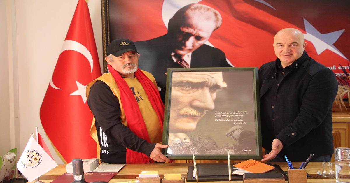 Ziyaretten memnuniyet duyduğunu belirten Saray Belediye Başkanı Özgen Erkiş, 57. Alay Yürüyüş Komitesi Başkanı Hikmet Selim Yılmaz ve komite üyelerine anlamlı ziyaretleri ve nazik davetleri için teşekkür ederek özel olarak tasarlanan Atatürk Portresi armağan etti.