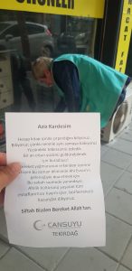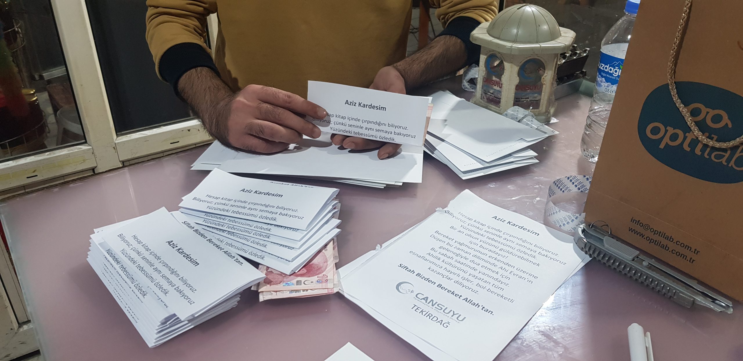 Cansuyu Derneği Tekirdağ il Başkanı Murat Vakitçi, mahallede anahtarlarını emanet ettikleri esnafların yüzüne tebessüm olmak istediklerini belirtti ve  açıklamasına şöyle devam etti.