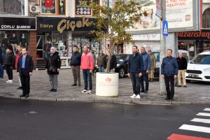 Atatürk Meydanı’nda düzenlenen anma programında saatler 09.05’i gösterdiğinde Atatürk Anıtı’na çelenkler sunuldu ve ardından iki dakikalık saygı duruşunda bulunuldu. Sirenler eşliğinde gerçekleştirilen saygı duruşunda 7’den 70’e yüreği Mustafa Kemal Atatürk sevdasıyla çarpan tüm vatandaşlar duygu dolu anlar yaşadı. Çorlu’da hayat dururken göndere çekilen Türk bayrağı, İstiklal Marşımız eşliğinde yarıya indirildi.