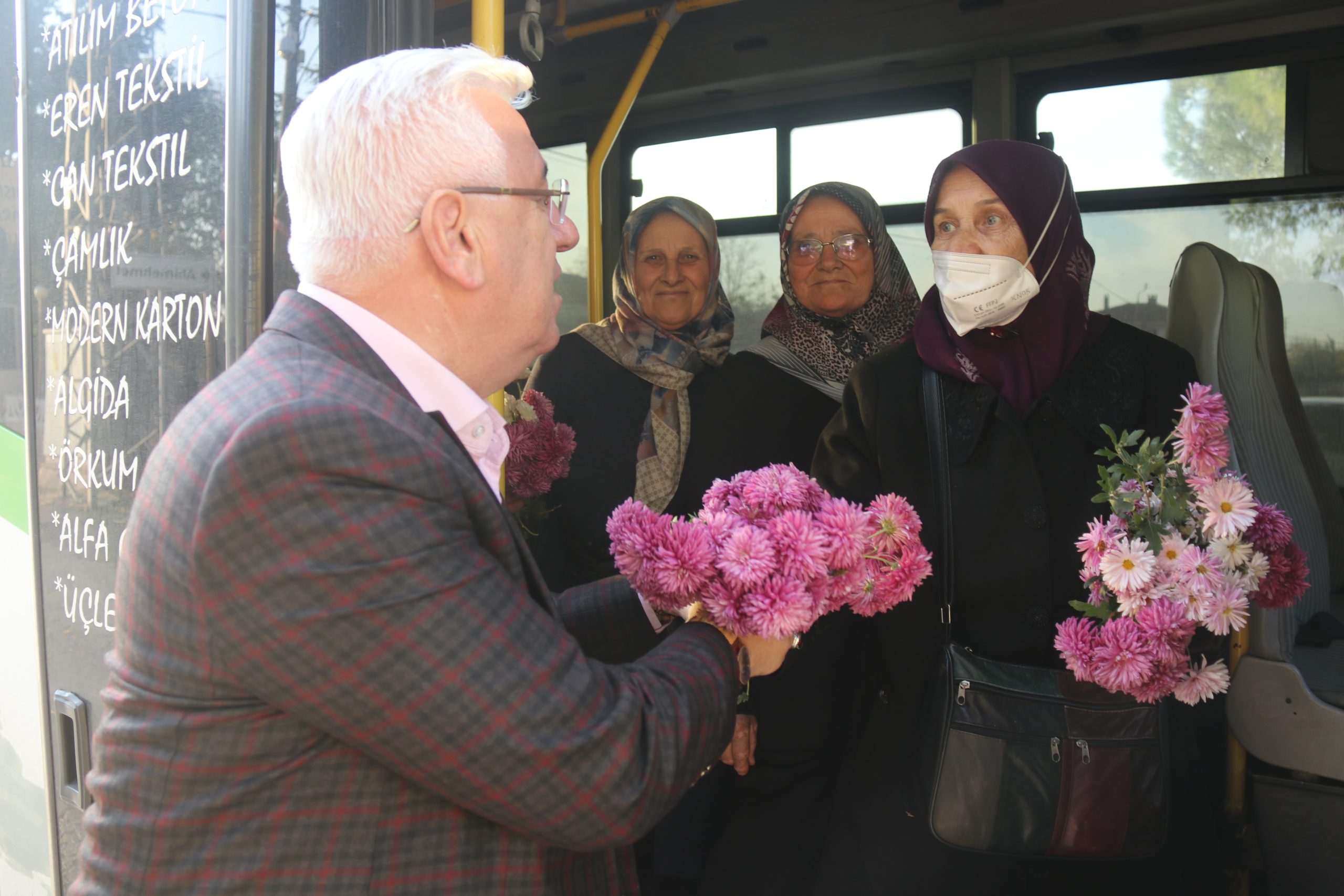 Ergene Belediye Başkanı Rasim Yüksel’in İğneler mahallesinde gerçekleştirdiği ziyaret sırasında halk otobüsü ile Pınarbaşı mahallesine gitmekte olan vatandaşlar halk otobüsünü durdurup otobüsten başkan Rasim Yüksel’e çiçek takdim ederek, sevgi gösterisinde bulundular.
